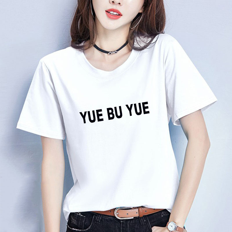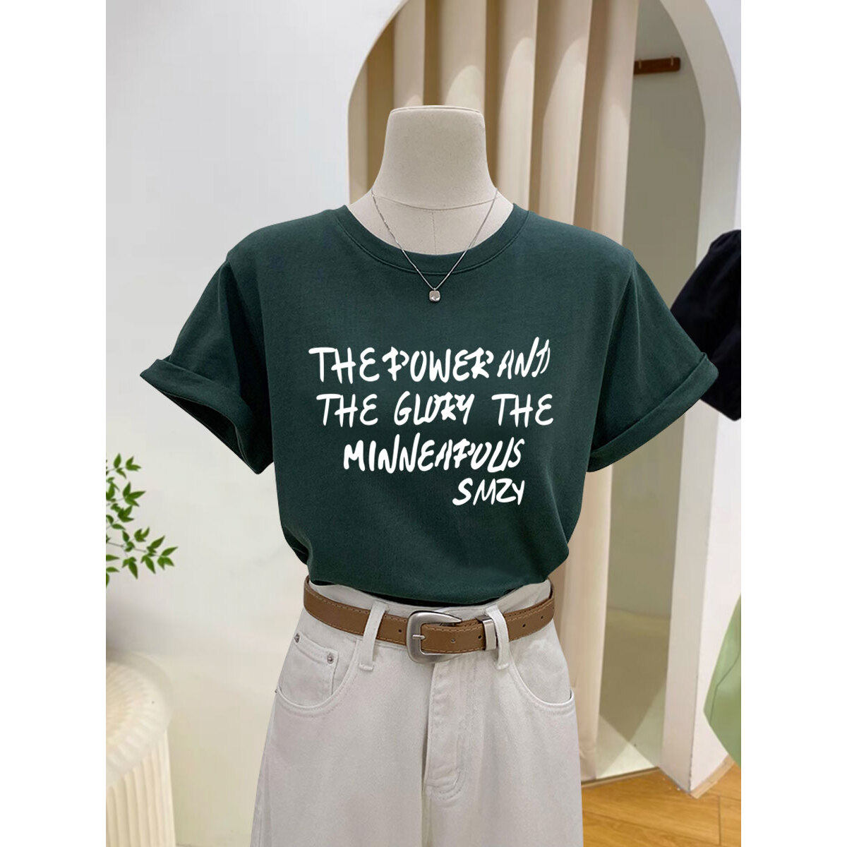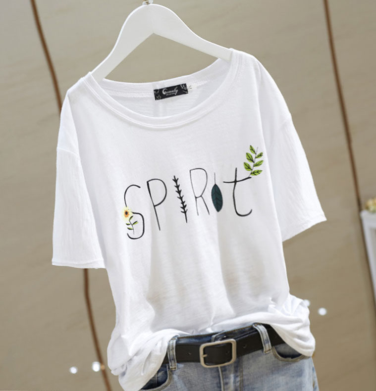 95棉短袖t恤女宽松韩版学生百搭纯竹节棉圆领字母印花显瘦打底衫