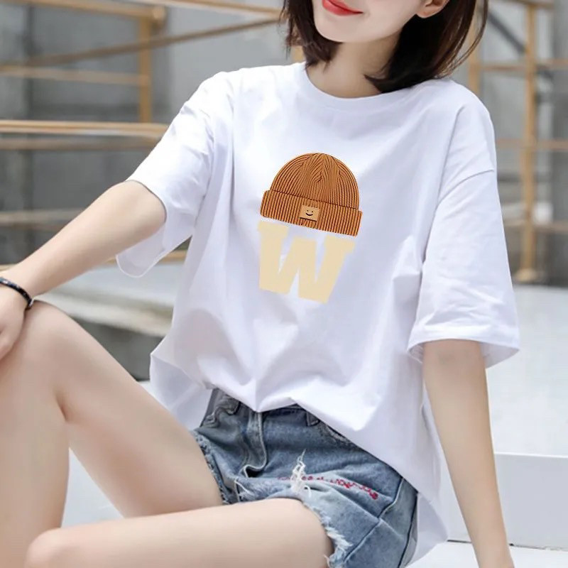 2025新款纯棉短袖t恤女夏宽松韩版学生上衣字母大码显瘦印花ins潮