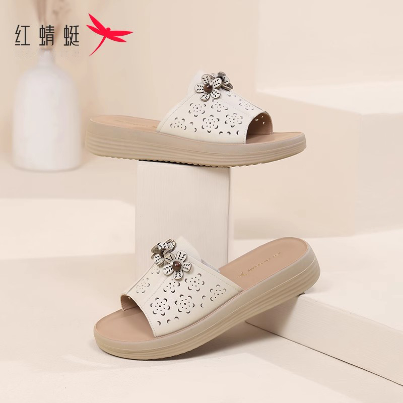 红蜻蜓妈妈拖鞋2025夏季款舒适女鞋真皮外穿厚底凉鞋中年一字拖女