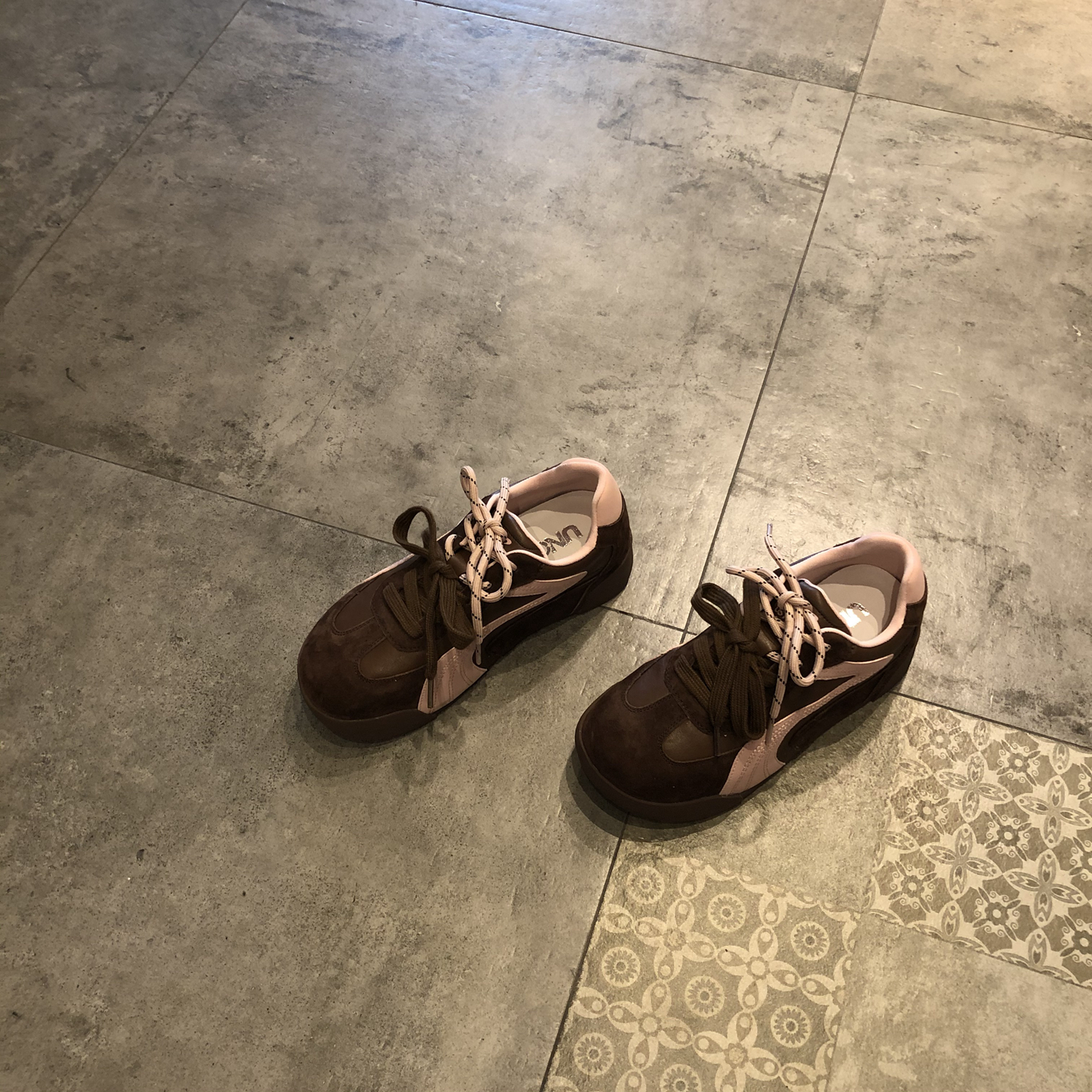 2025新款时尚百搭圆头厚底舒适女鞋真皮复古拼色休闲运动鞋德训鞋