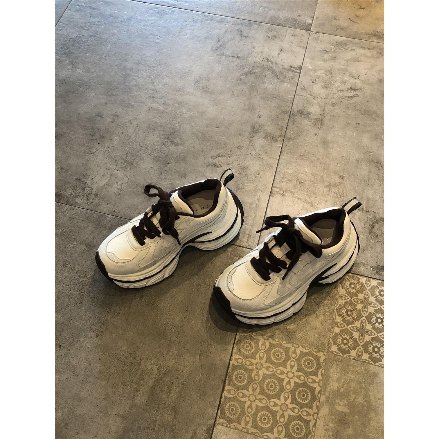 2025新款时尚百搭圆头厚底舒适女鞋真皮拼接老爹鞋休闲运动鞋女
