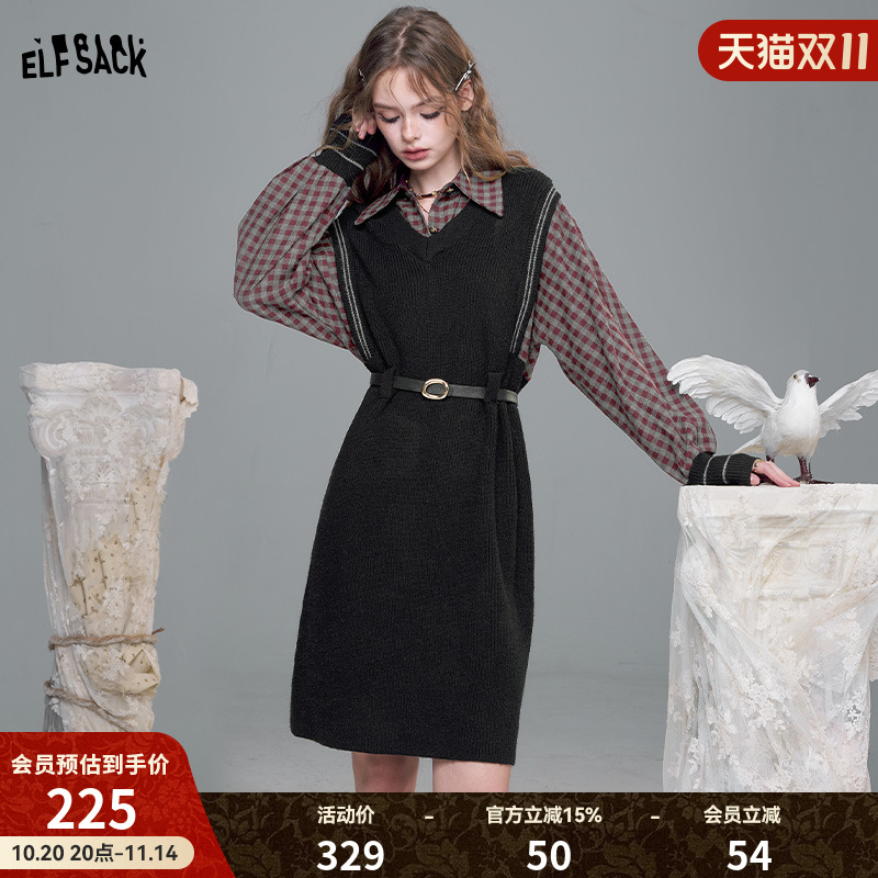妖精的口袋假两件衬衫拼接针织连衣裙女2025年秋季新款miu系长裙
