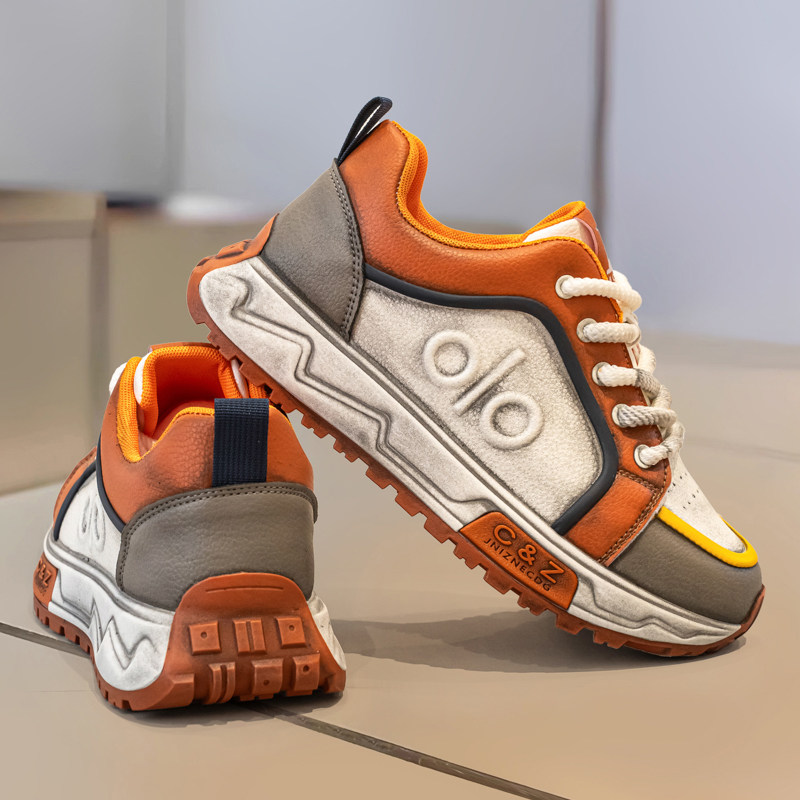 欧洲站男鞋春季潮流百搭皮面做旧板鞋青少年厚底运动休闲德训潮鞋