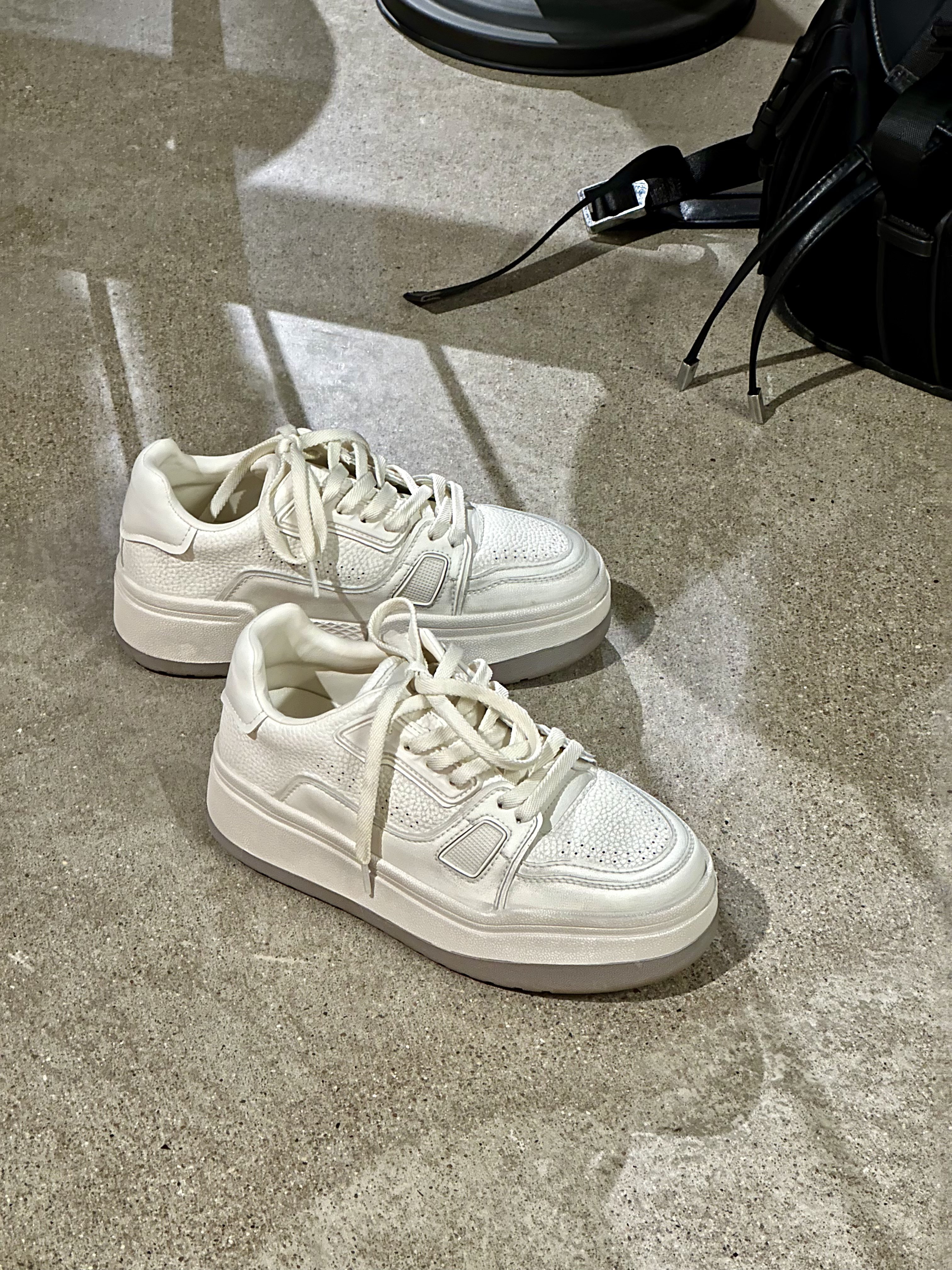 苏与2026春季新款真皮松糕厚底擦色做旧板鞋时尚运动休闲小白女鞋