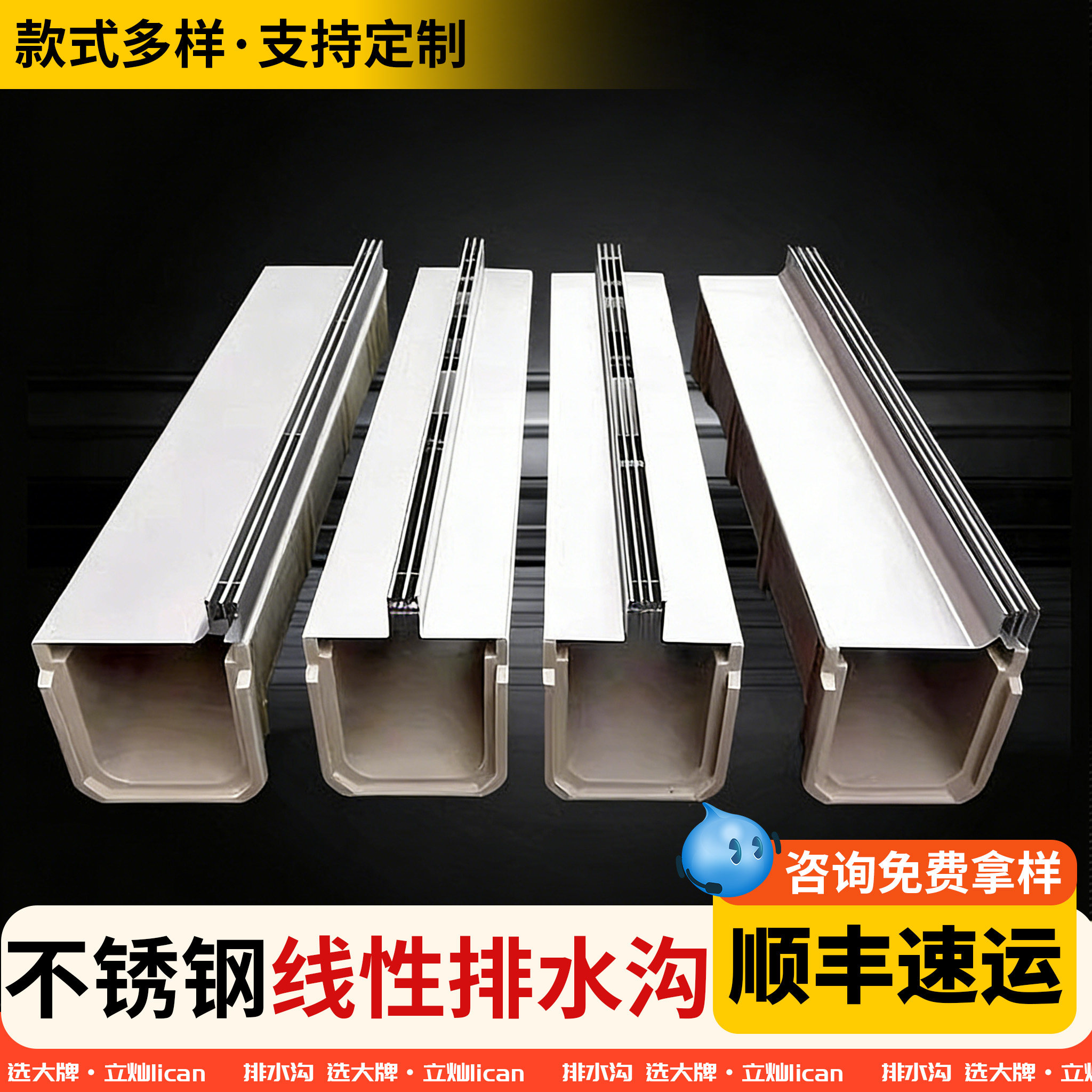 u型槽排水沟成品线性户外庭院阳台不锈钢排水槽厨房盖板花园沟槽