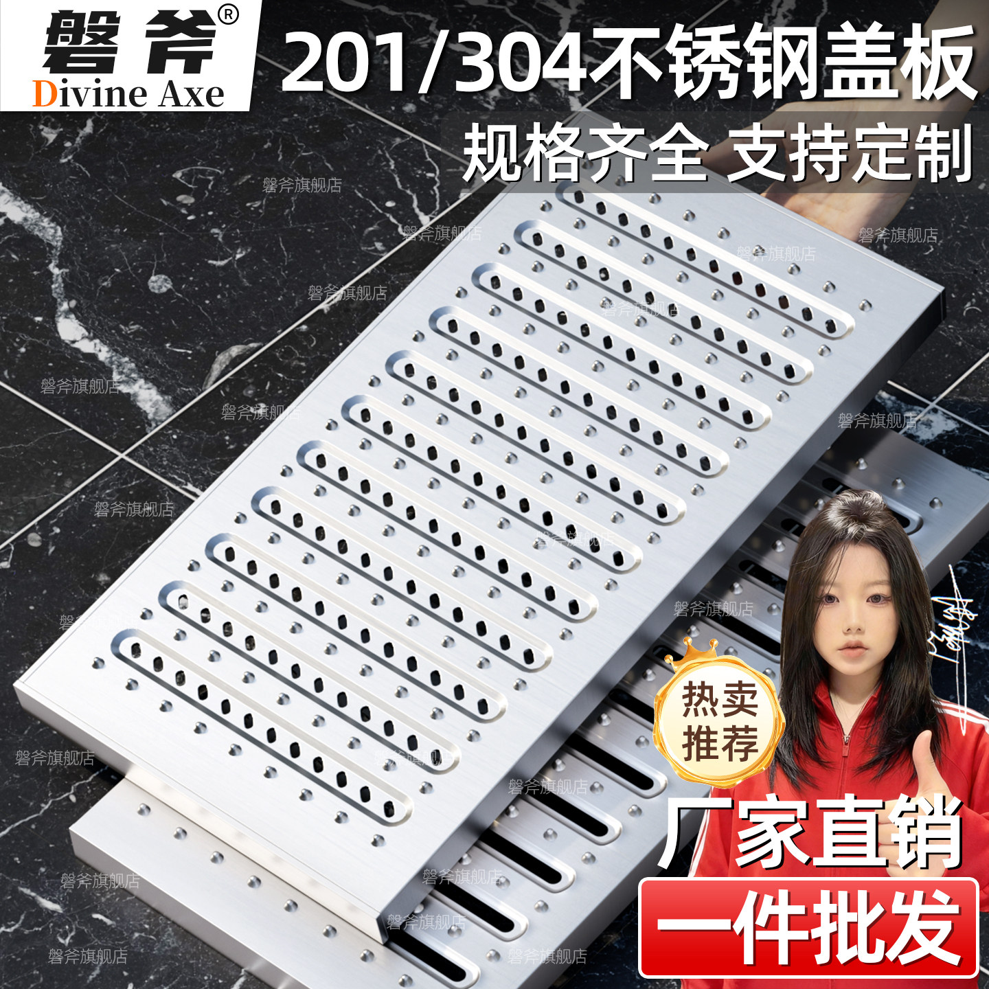不锈钢排水沟盖板304成品地沟盖板厨房庭院阳台露台下水道盖板