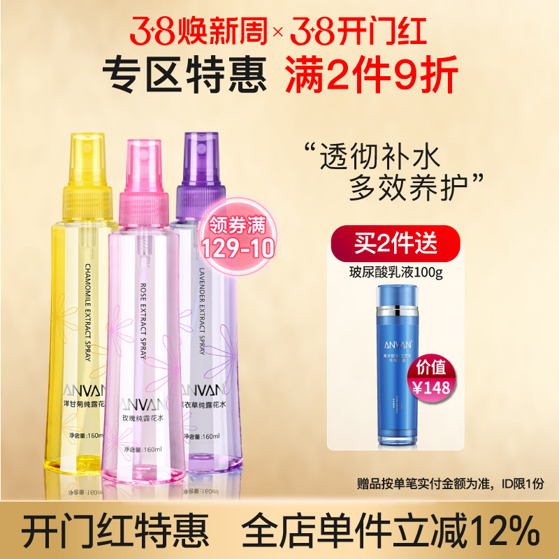汉芳玫瑰薰衣草洋甘菊纯露3瓶组合 湿敷爽肤水 补水花水喷雾套装