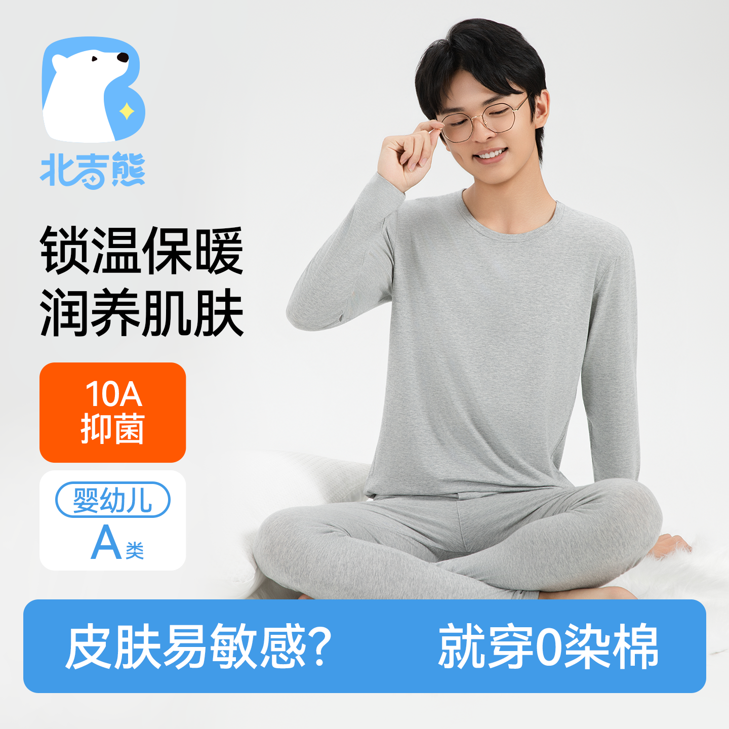 猫人秋衣秋裤男士套装腈纶发热隐形薄款保暖内衣抗菌棉毛衫秋冬季