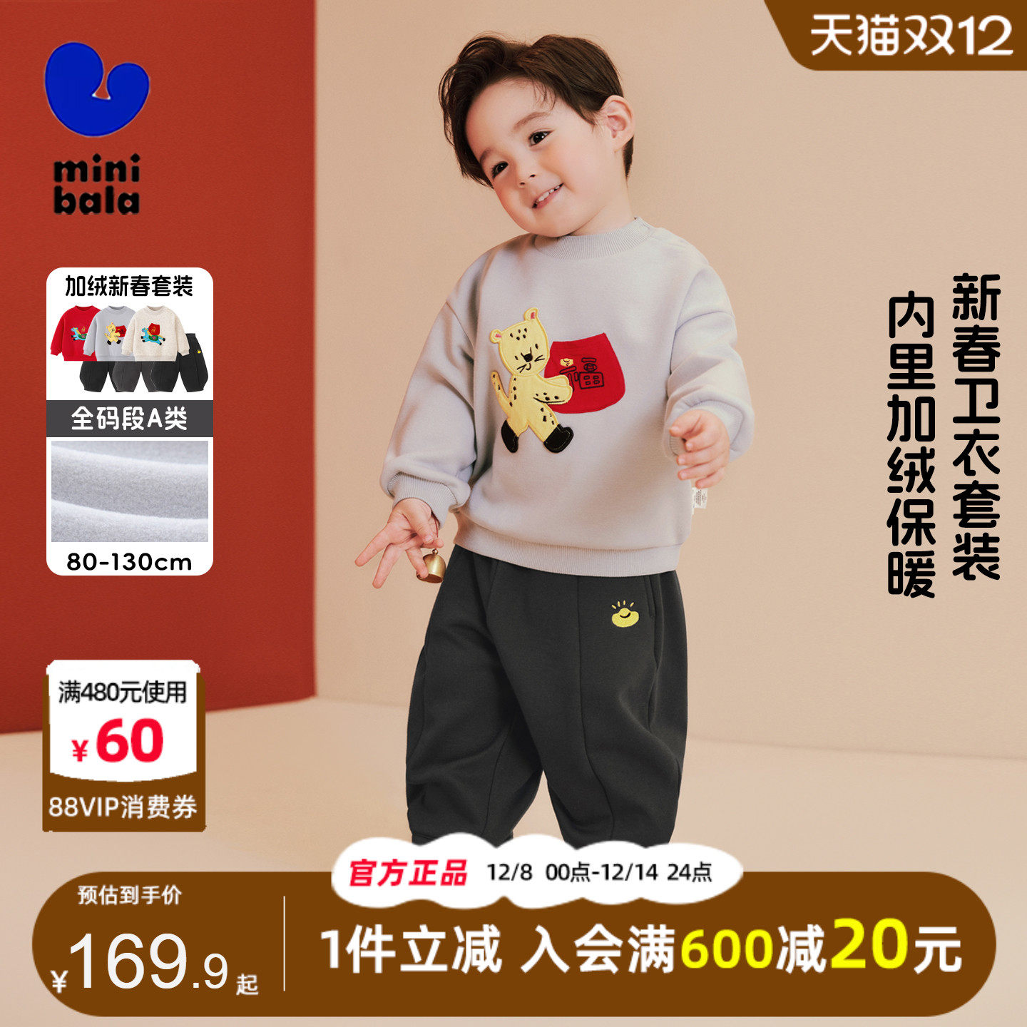 迷你巴拉巴拉男童卫衣套装2026新春款宝宝加绒保暖洋气长袖拜年服