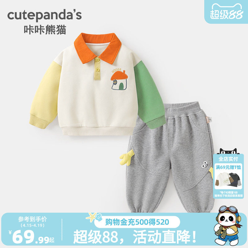 咔咔熊猫宝宝polo领套装春季儿童学院风卫衣两件套春款男童童装潮