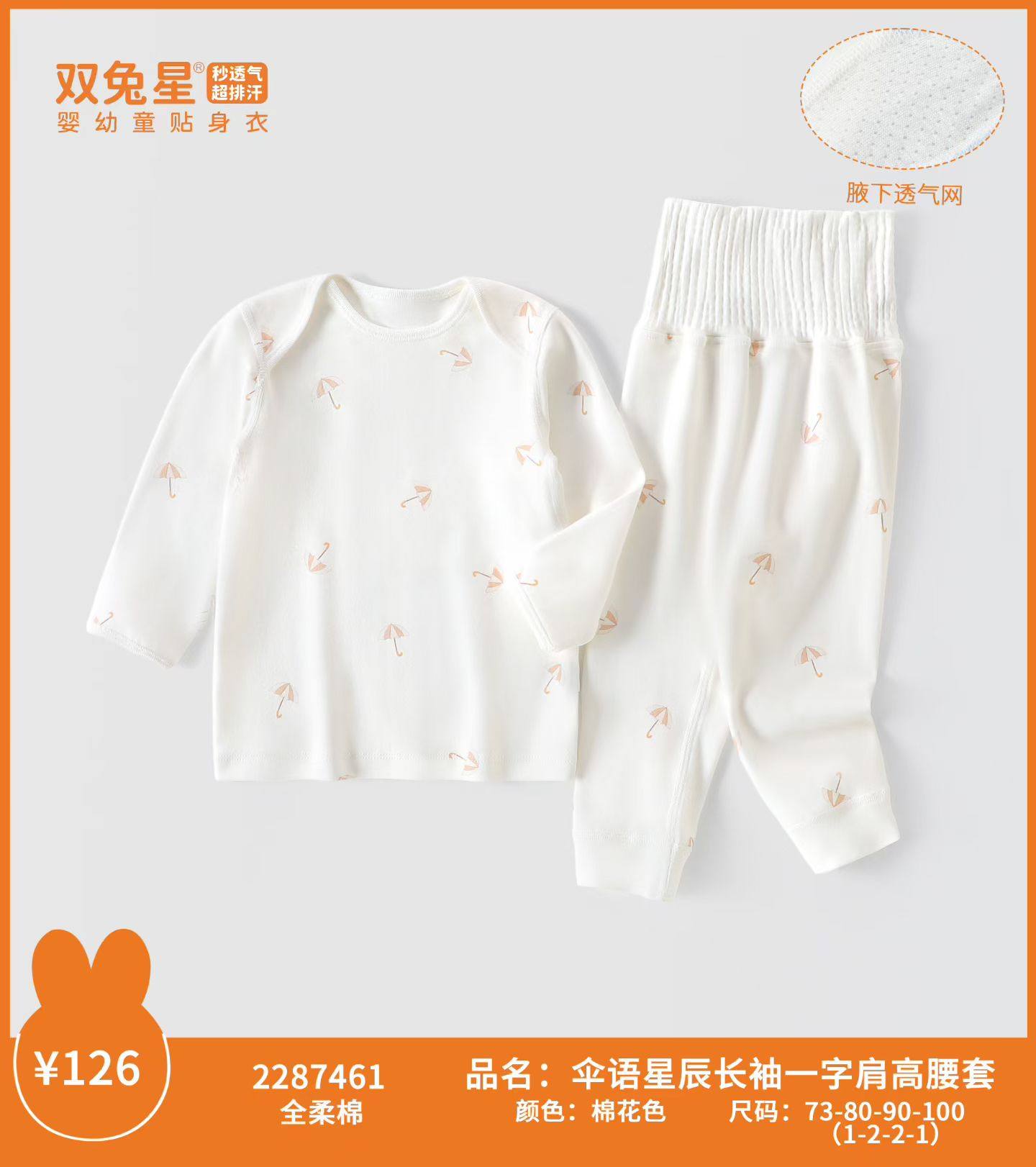 双兔星26春款儿童家居内衣男女宝宝纯棉高腰套装婴儿纯棉内衣裤