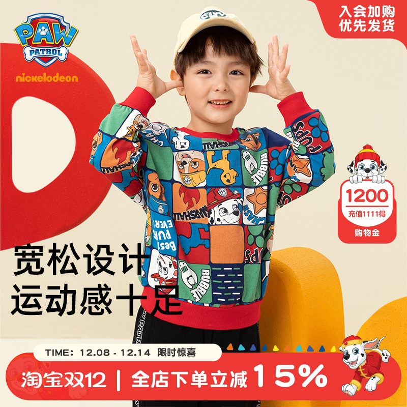 汪汪队儿童卫衣男童上衣春秋款2025宝宝女童春款卡通休闲套衫套装