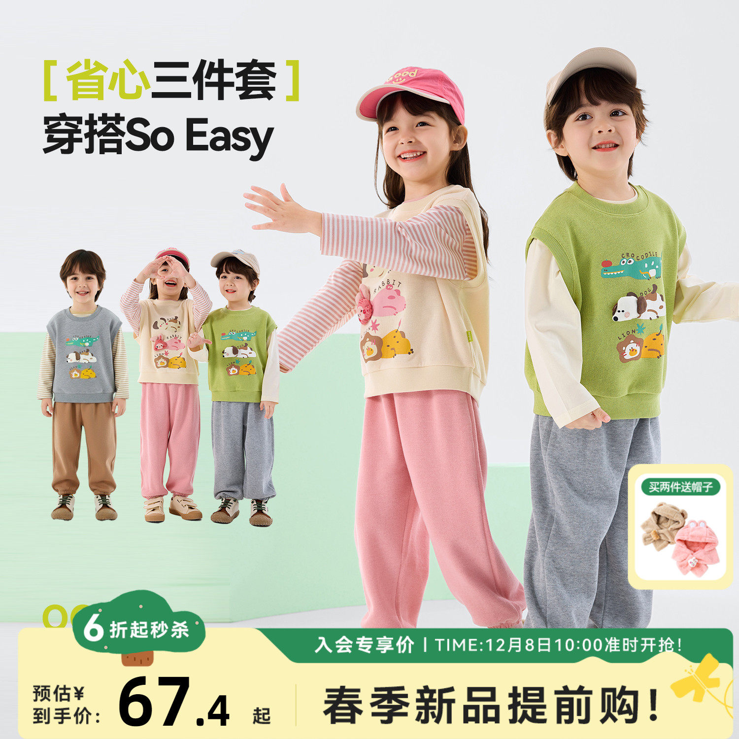 【三件装】嘟嘟家男童套装春季儿童T恤宝宝马甲女童裤子童装春款