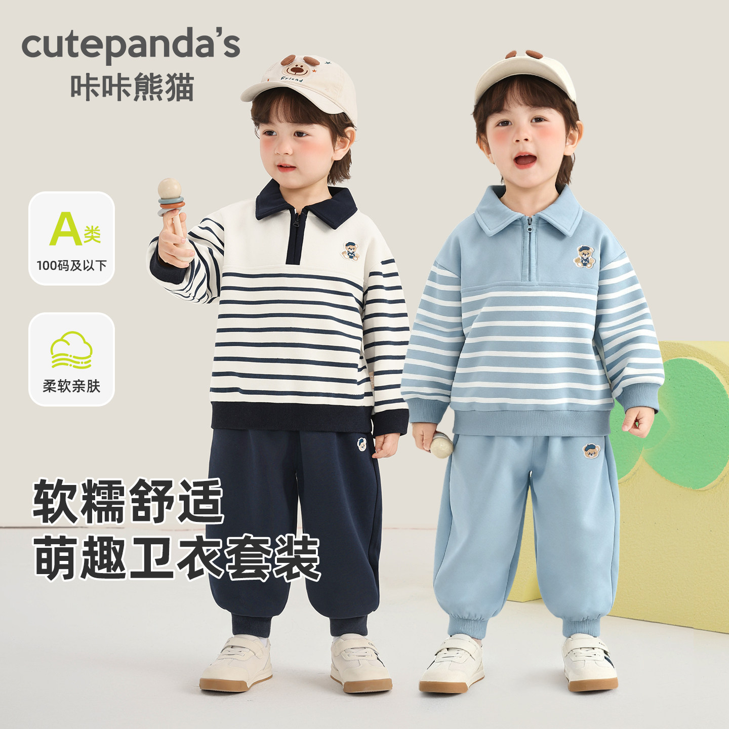 嘟嘟家宝宝套装春秋男童卡通卫衣女童条纹休闲裤两件套儿童春款潮