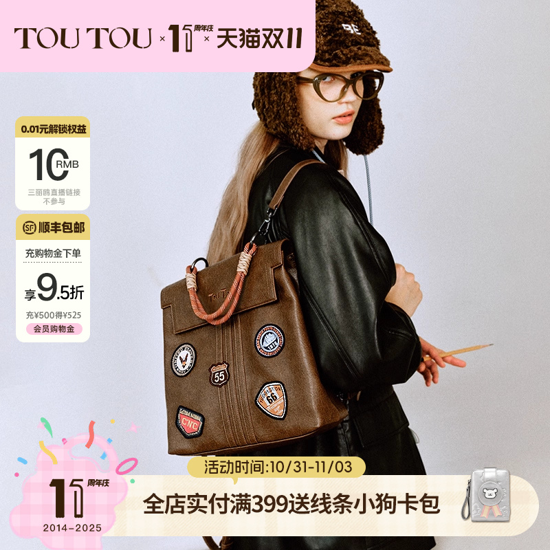 TOUTOU复古原创设计感双肩包大容量百搭通勤精致旅游两用斜挎背包