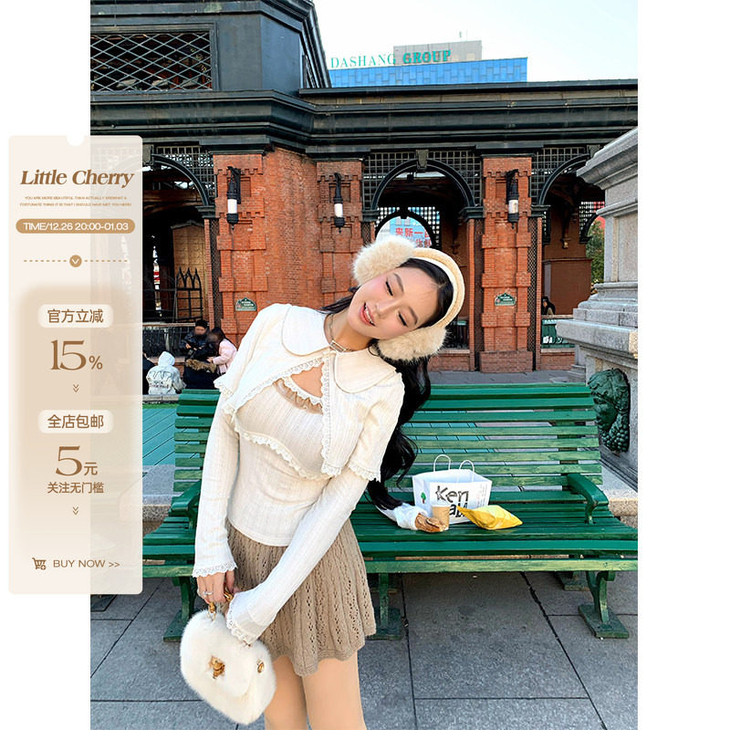 THE SWAN司凰轻奢 韩女氛围穿搭30羊毛蕾丝针织衫纯欲上衣两件套