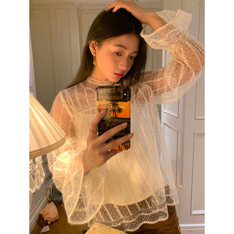 衬衣长袖蕾丝透视性感开衫上衣夏季吊带两件套新款气质修身打底衫