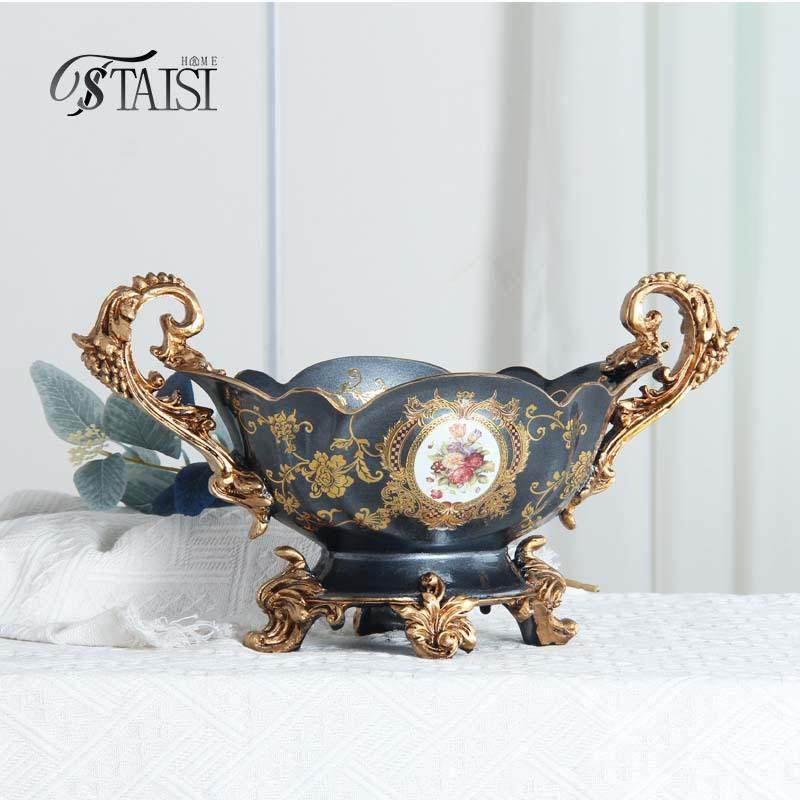 爆款欧式果盘套装客厅奢华高档水果盘家用干果盘创意装饰树脂摆件