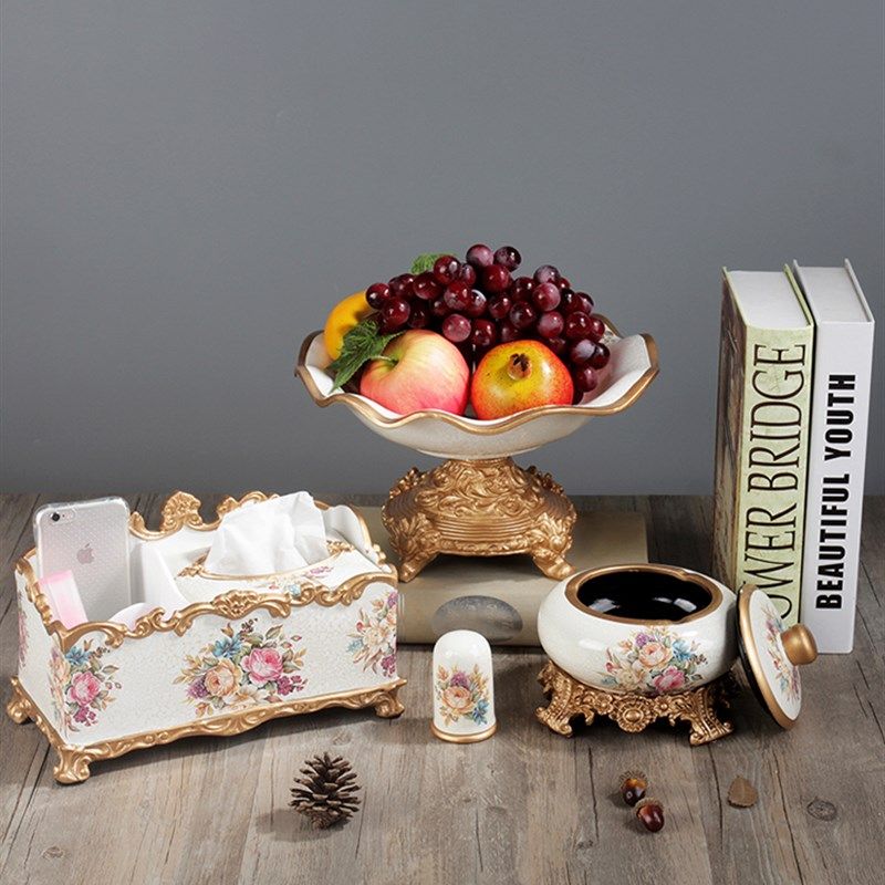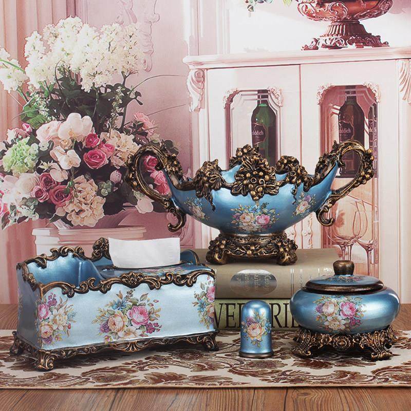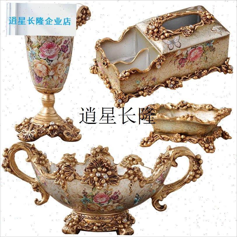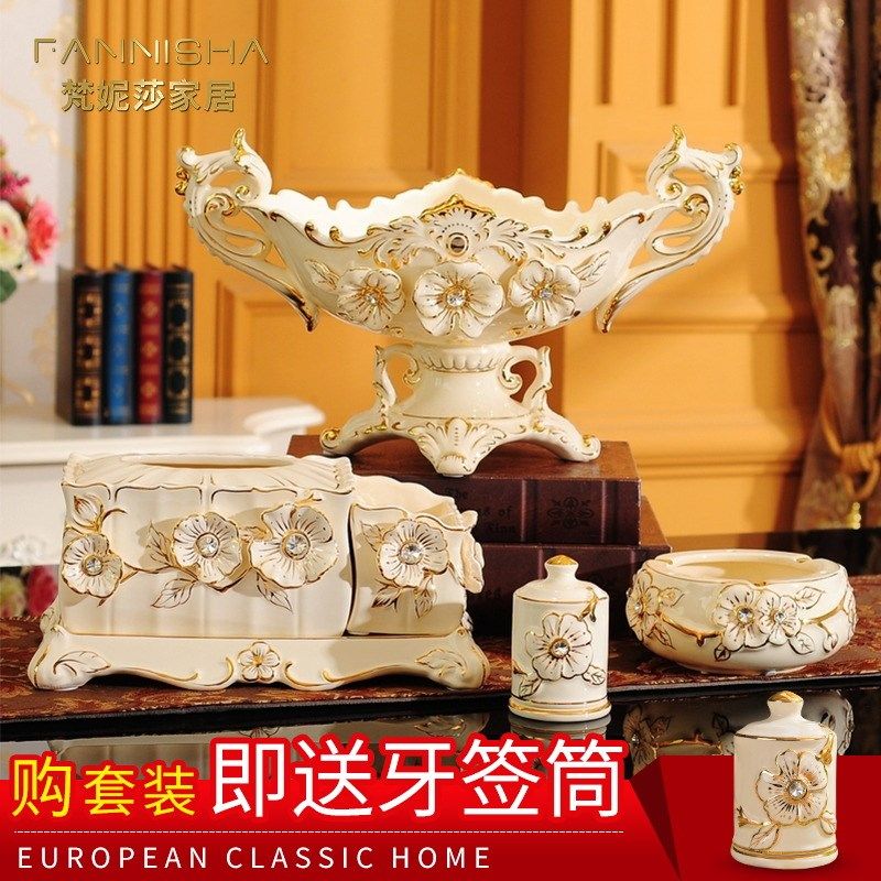 l奢华欧式果盘套装创意家居客厅茶几装饰品家用纸巾Y盒烟缸花瓶摆