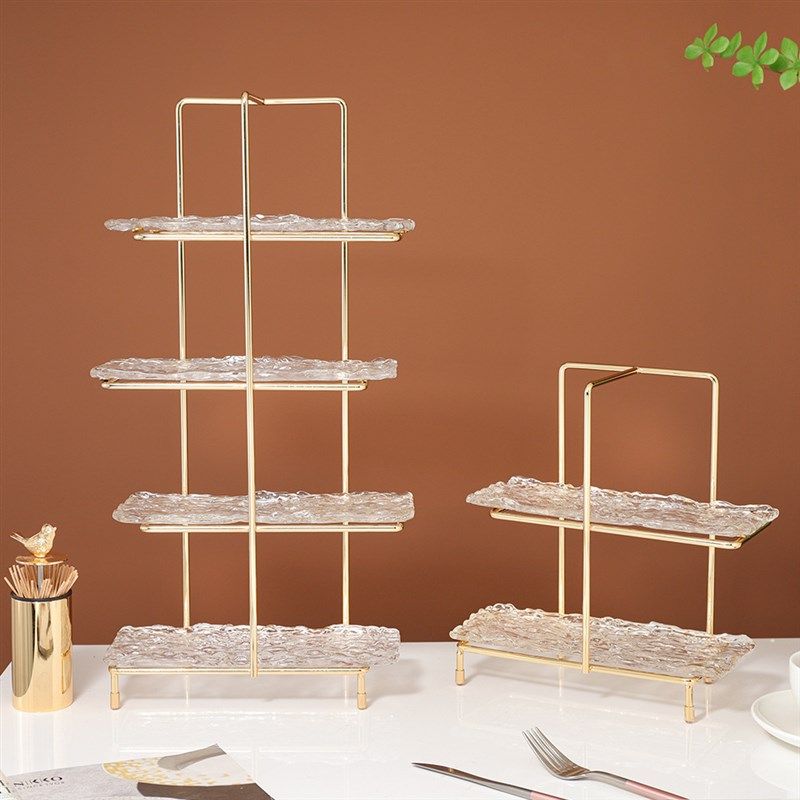 午后茶伶点心架子多层糖果盘高级感玻璃欧式果盘套装欧式茶几摆件
