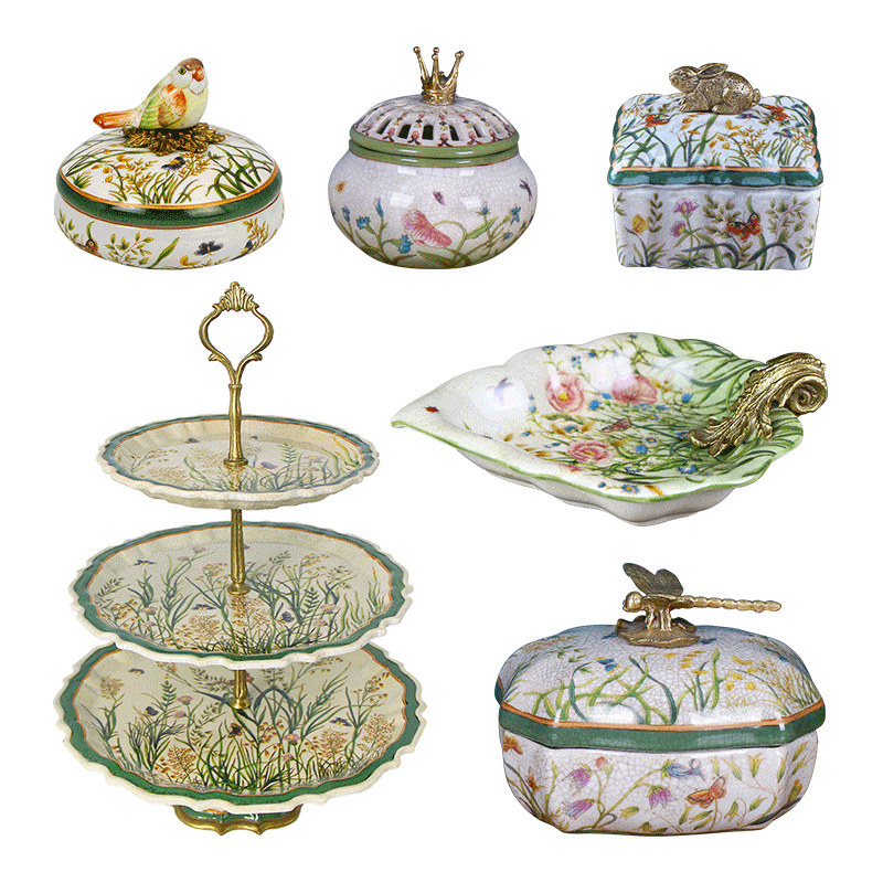 创意欧式果盘套装客厅装饰纸巾盒陶瓷茶几烟缸收纳盘美式花瓶摆件