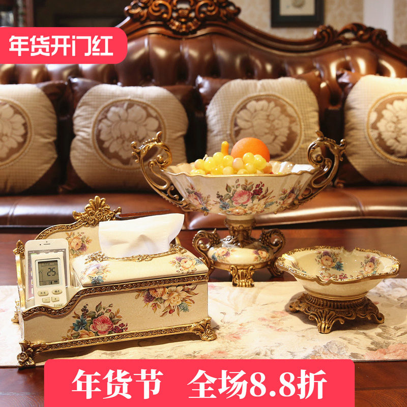 欧式果盘套装创意家居客厅茶几装饰品摆件美式纸巾盒水果盘三件套