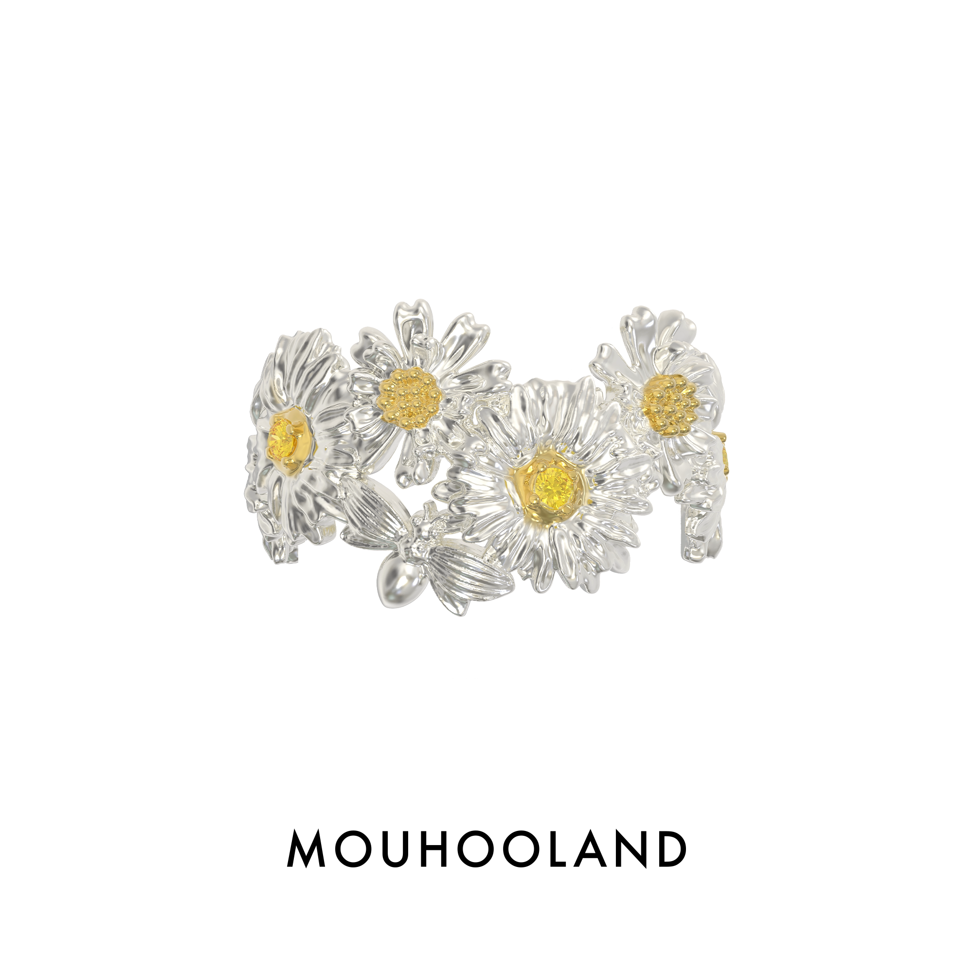 Mouhooland/暮后之地雏菊系列雏菊花朵拼接戒指情侣指环小众设计
