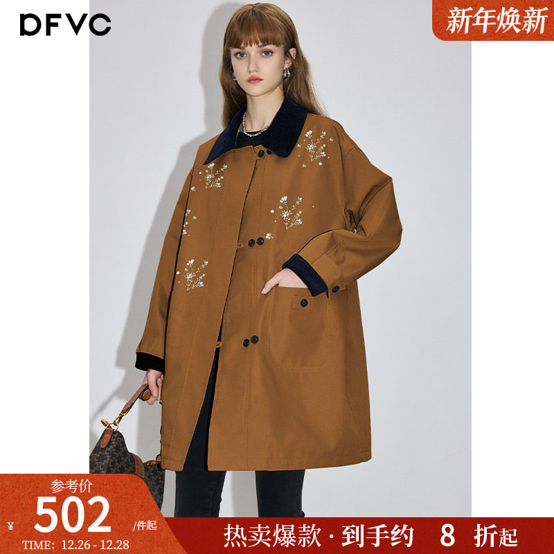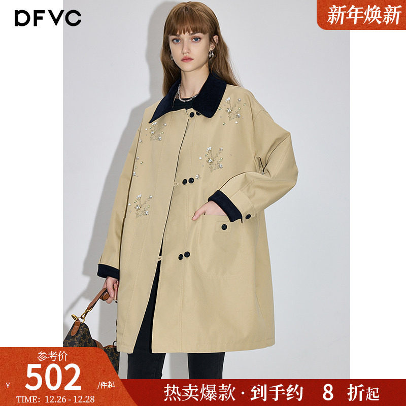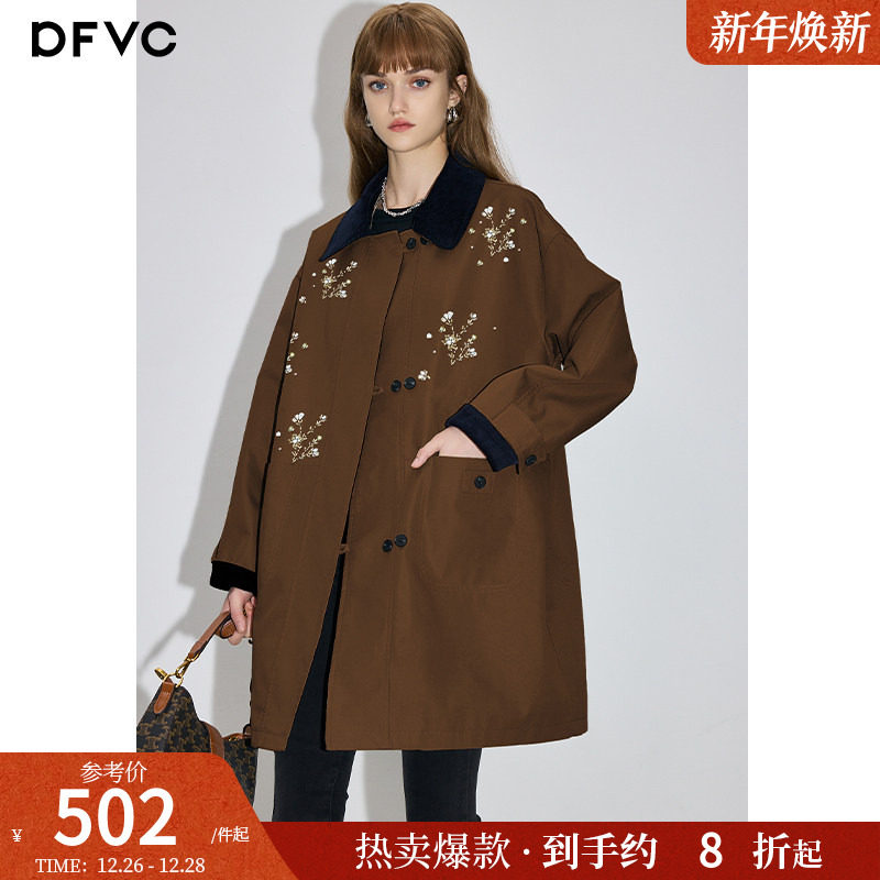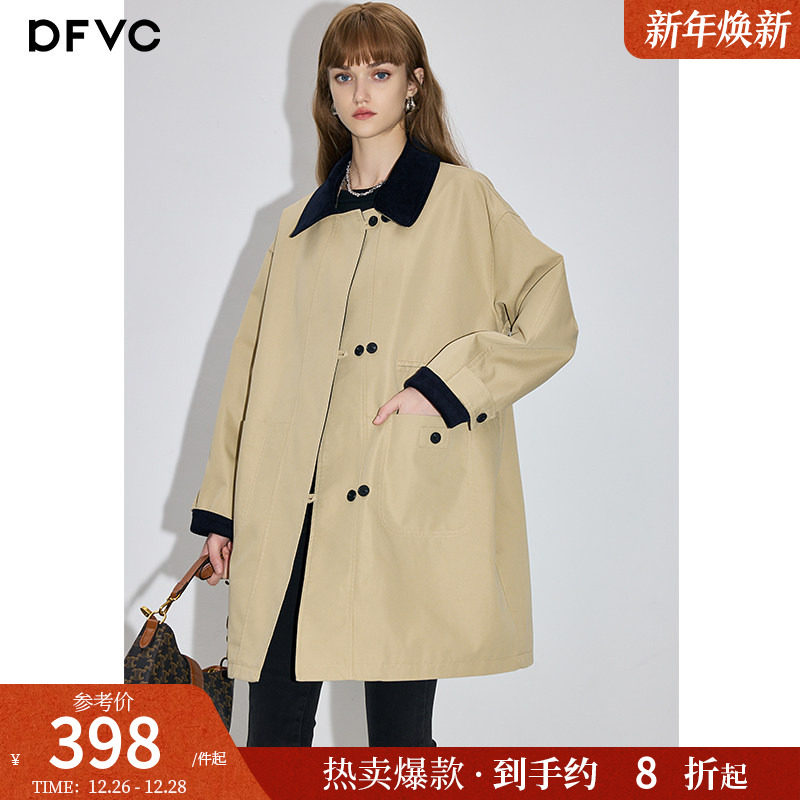 dfvc美拉德韩版中长款风衣外套女2025秋季新款宽松显瘦小个子大衣