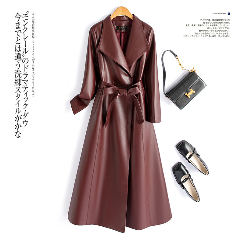 2025春秋新款海宁皮衣女式中长款修身显瘦皮风衣韩版大码皮外套潮