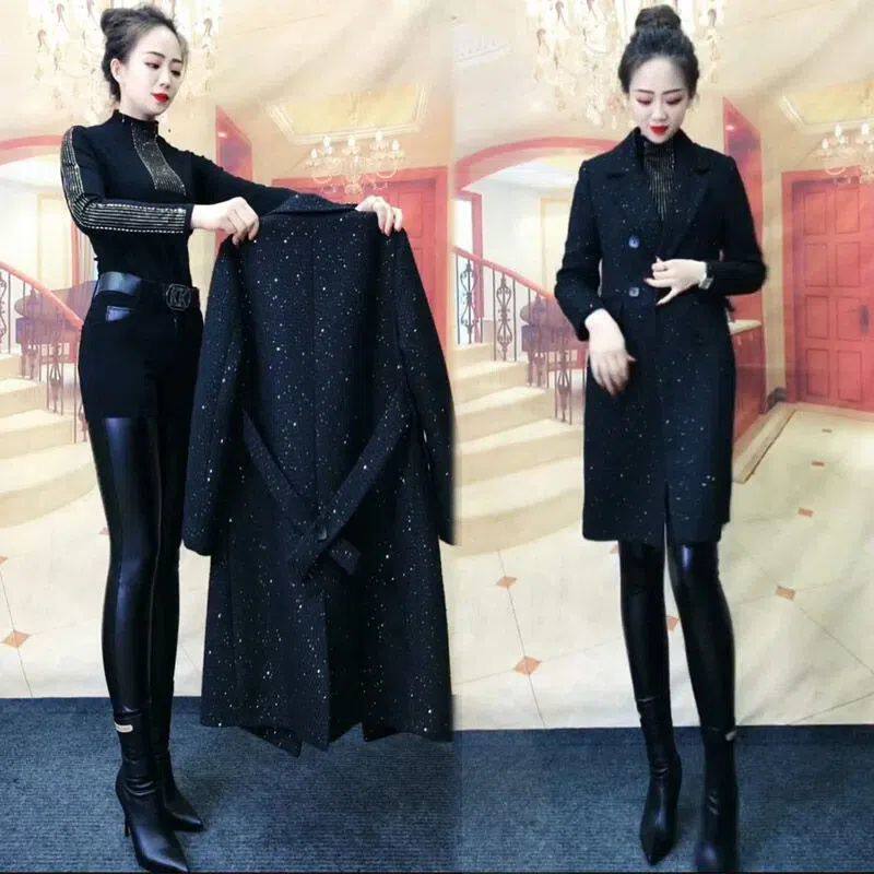 毛呢外套女中长款2023冬季新款韩版显瘦学生风衣加厚过膝呢子大