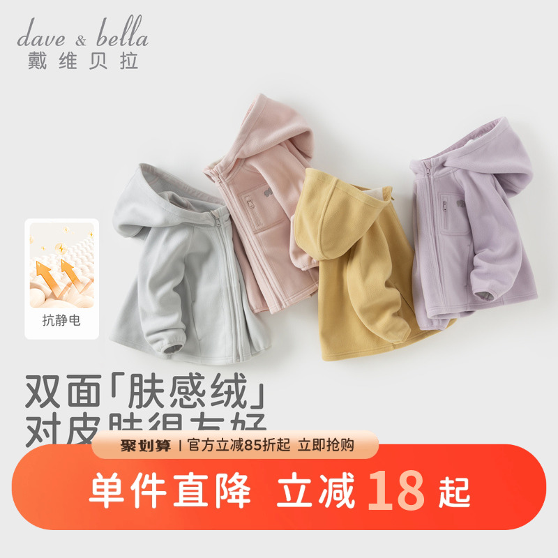 戴维贝拉儿童摇粒绒外套秋装2025新款男童女童抗静电上衣宝宝衣服