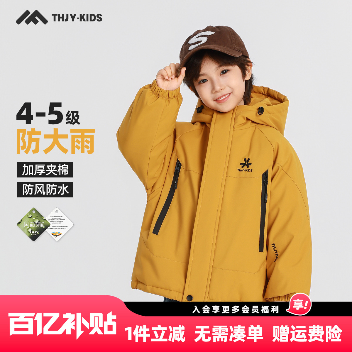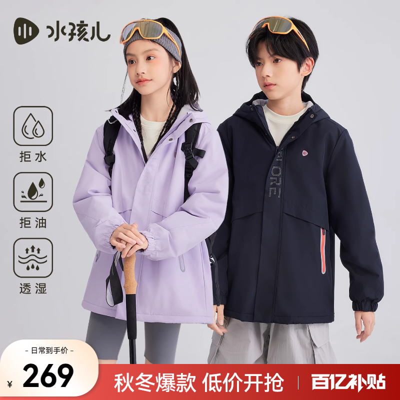 水孩儿儿童外套三防加绒秋冬装2025新品大童男童宝宝女童工装风衣