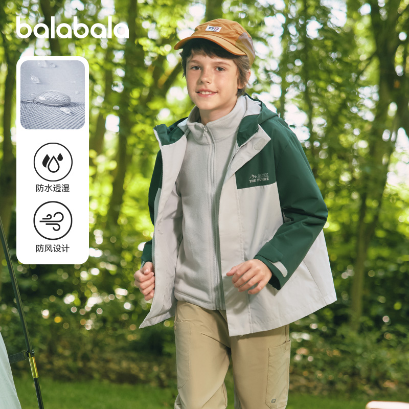 巴拉巴拉儿童冲锋衣男童三合一外套大童防水上衣2025秋季新款童装
