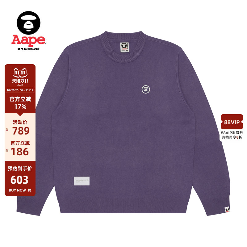 Aape旗舰店男装春秋字母猿人潮流休闲简约圆领毛衣针织衫B371XXN