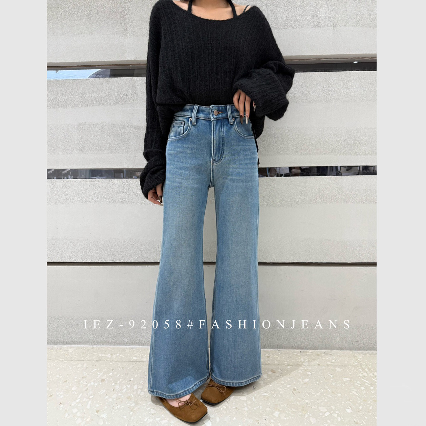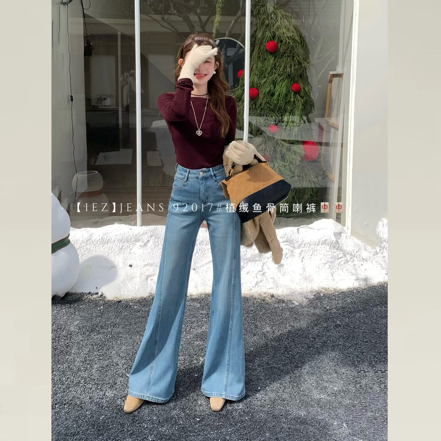 iez加绒微喇牛仔裤版型超好看的裤子女款直筒不贴腿喇叭裤女91585