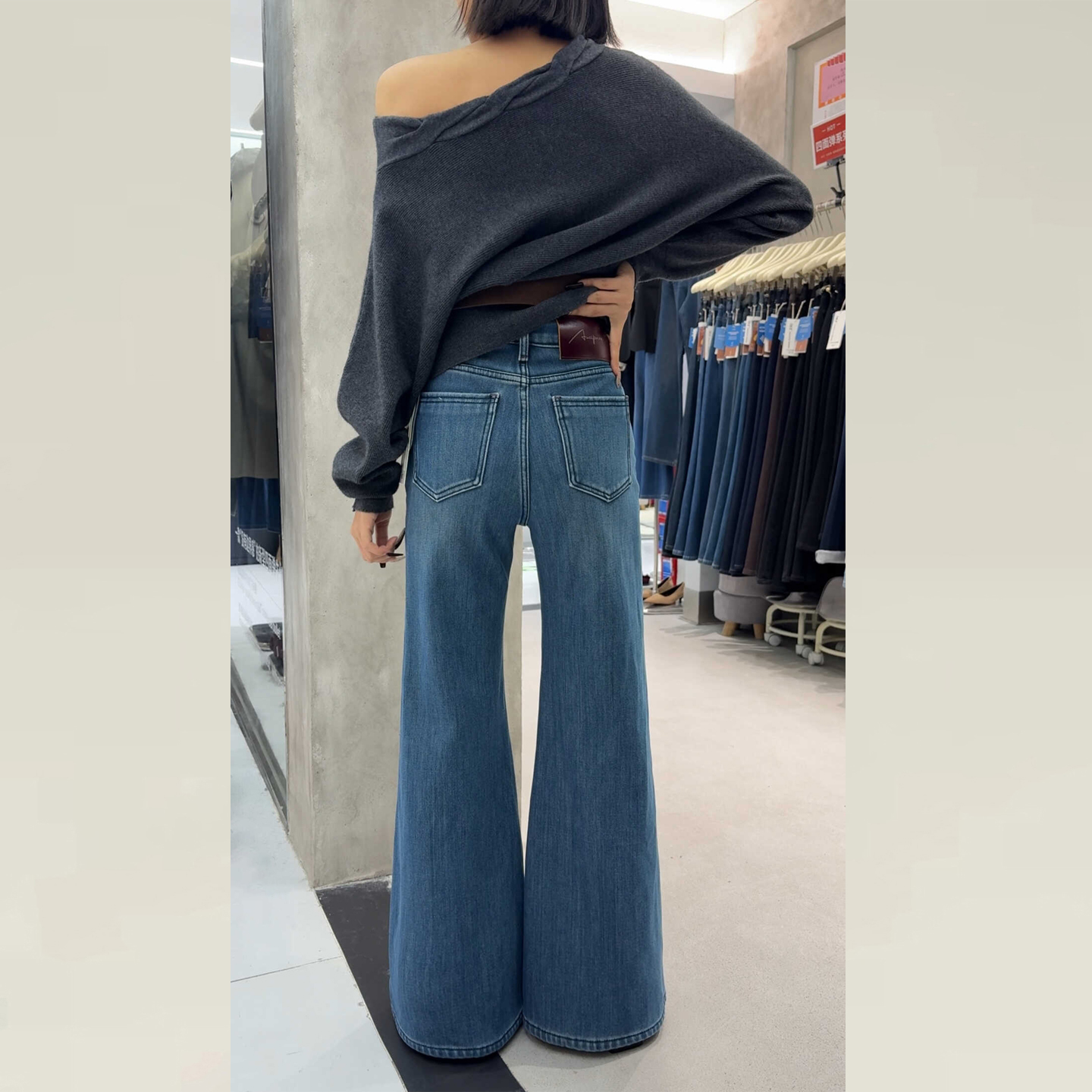 万像城专柜1400!显瘦的不讲道理!超高颜值加绒保暖牛仔阔腿裤女
