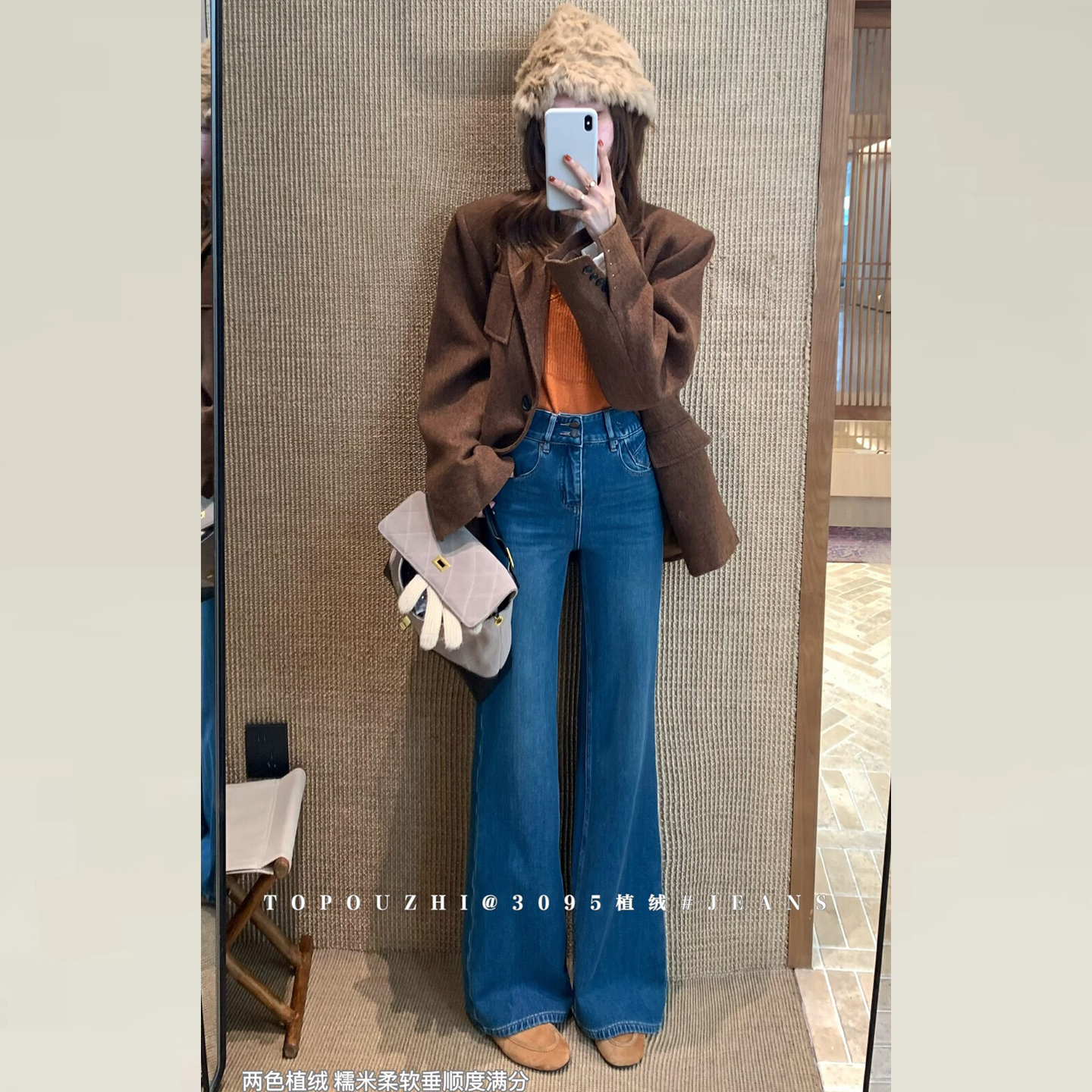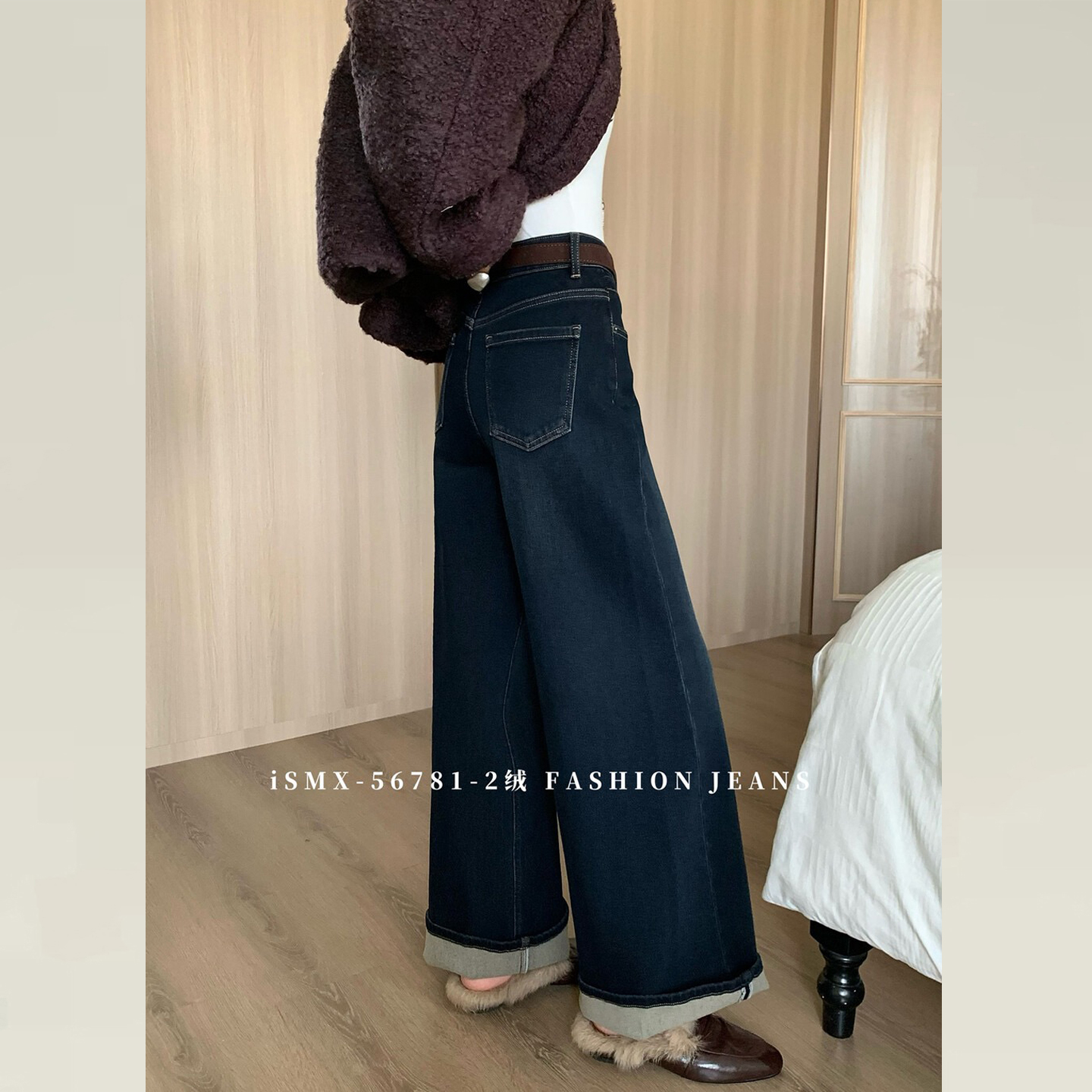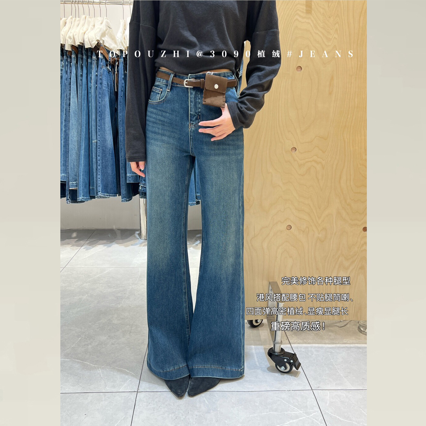 TOP欧制加绒牛仔裤小个子版型超好看的裤子女款不贴腿微喇裤5758