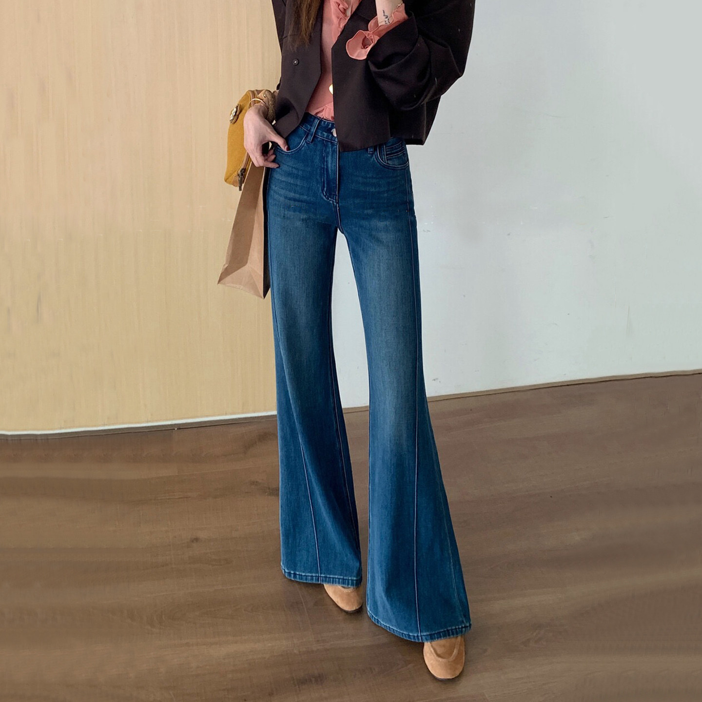 - 女牛仔裤微喇叭长裤