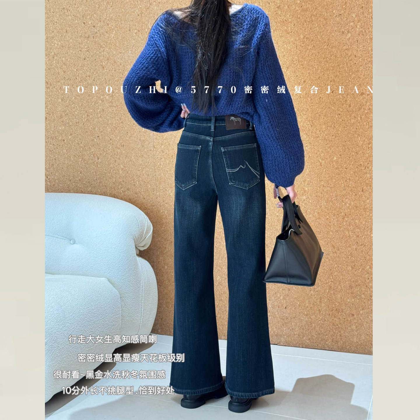 TOP秋冬加绒蓝色牛仔直筒微喇裤版型超好看的裤子不贴腿喇叭裤女