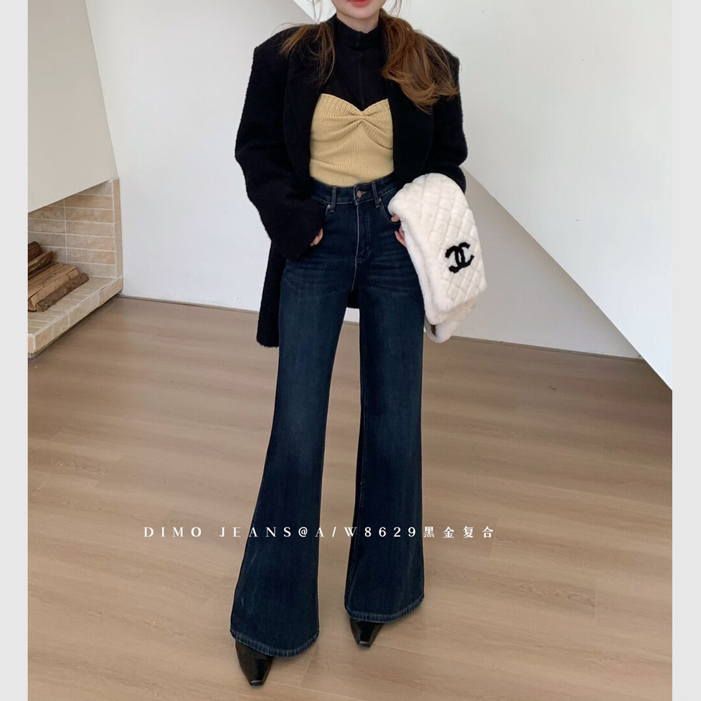 DIMO秋冬加绒牛仔裤版型超好看的裤子女高腰显瘦不贴腿微喇裤8608