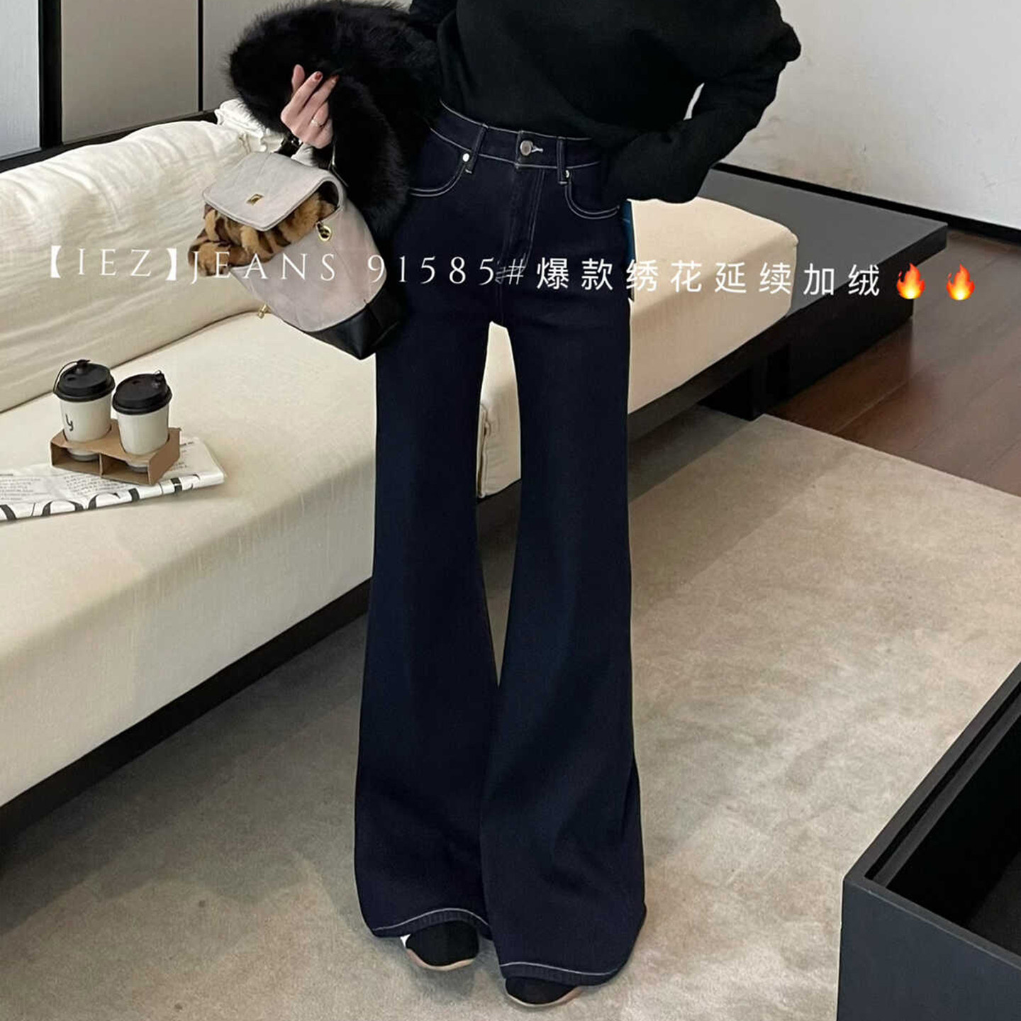 - 牛仔喇叭裤女