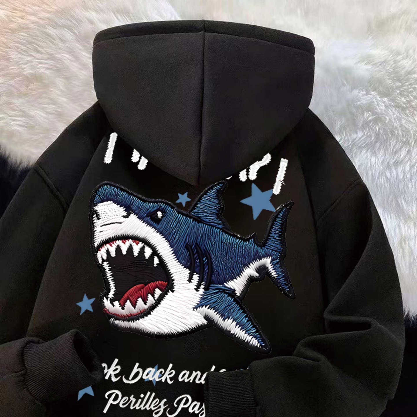 潮牌鲨鱼仿刺绣新款卫衣宽松秋冬加绒加厚个性街头风男女情侣上衣