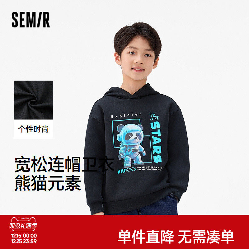森马儿童25秋季新款男中童宽松连帽卫衣熊猫印花长袖上衣个性时尚