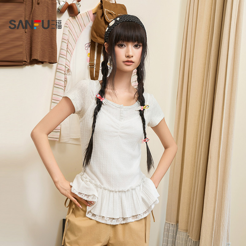 三福女秋季荷叶下摆吊带背心 时尚个性内搭打底上衣女509505