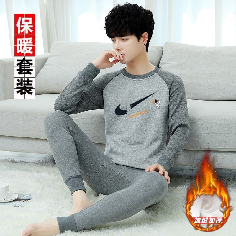南极人青年保暖内衣男加绒加厚青少年学生秋衣秋裤套装可外穿男士