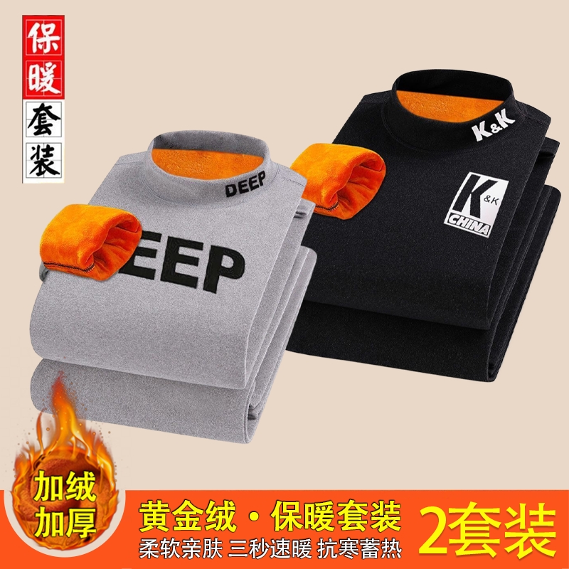 冬季保暖内衣男加绒加厚青年中学生可外穿防寒秋衣秋裤棉毛衫套装
