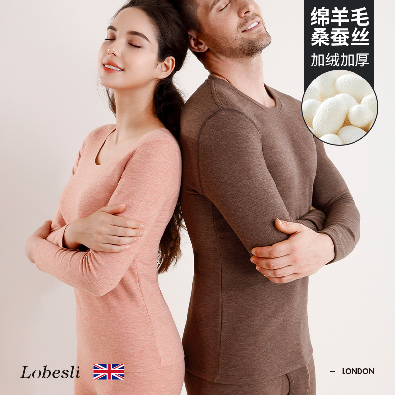 英国lobesli保暖内衣男加绒加厚女士秋衣秋裤套装德绒发热保暖衣