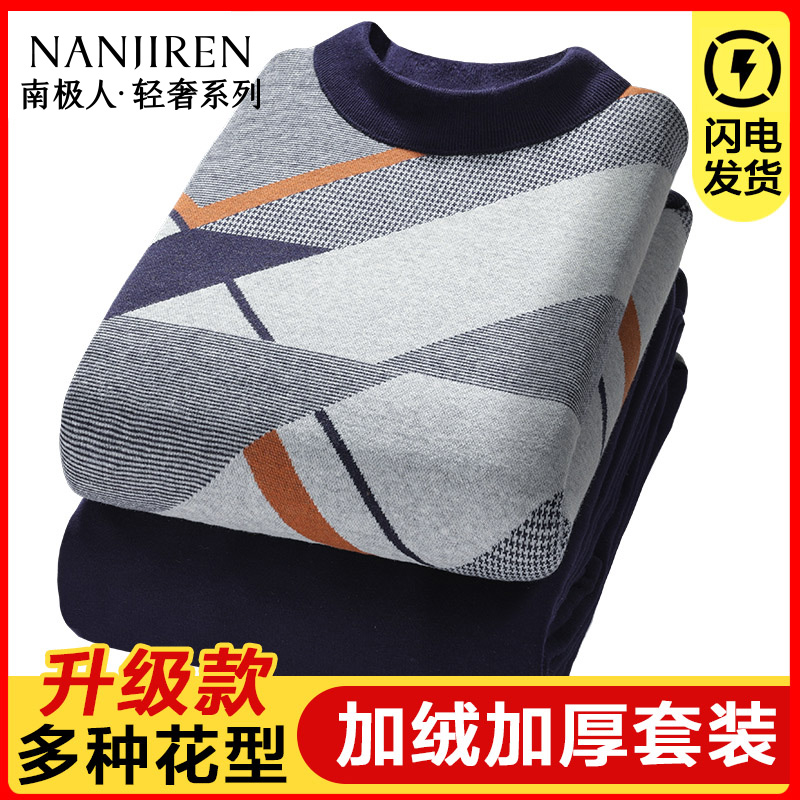 南极人男士保暖内衣男加绒加厚青年男生爸爸可外穿学生冬季一套装