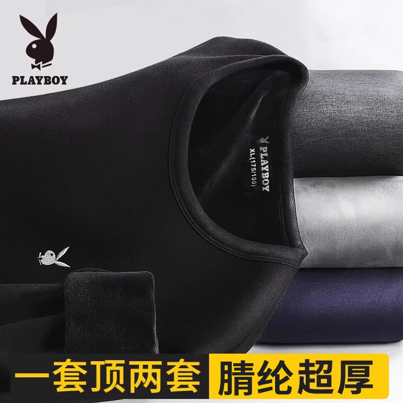 花花公子保暖内衣男加绒加厚男款打底秋衣秋裤套装冬季大码中青年