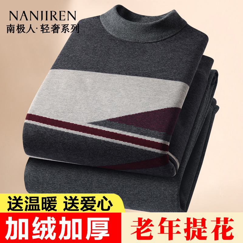 南极人男士保暖内衣男加绒加厚爸爸中老年人时尚可外穿防寒套装冬